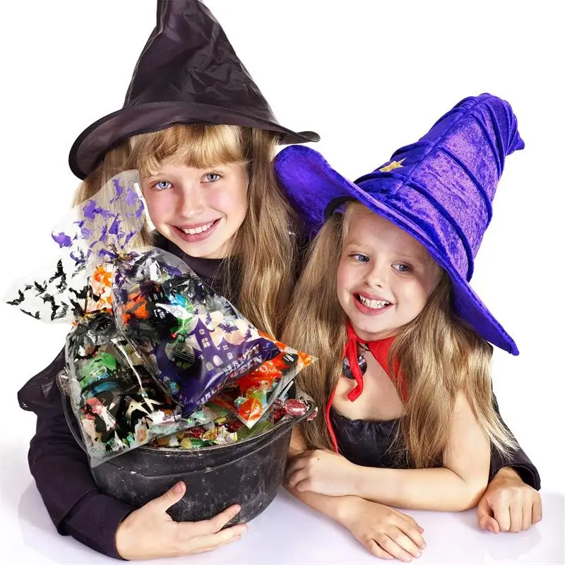 Прозрачный пакет для конфет с тыквой, черепом, кошкой, 50 шт.