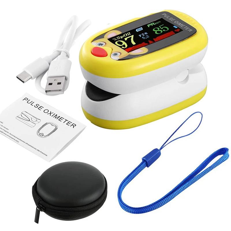 Пульсоксиметр детский на палец, прибор для измерения пульса, насыщения крови кислородом в педиатрическом стиле, перезаряжаемый, SpO2