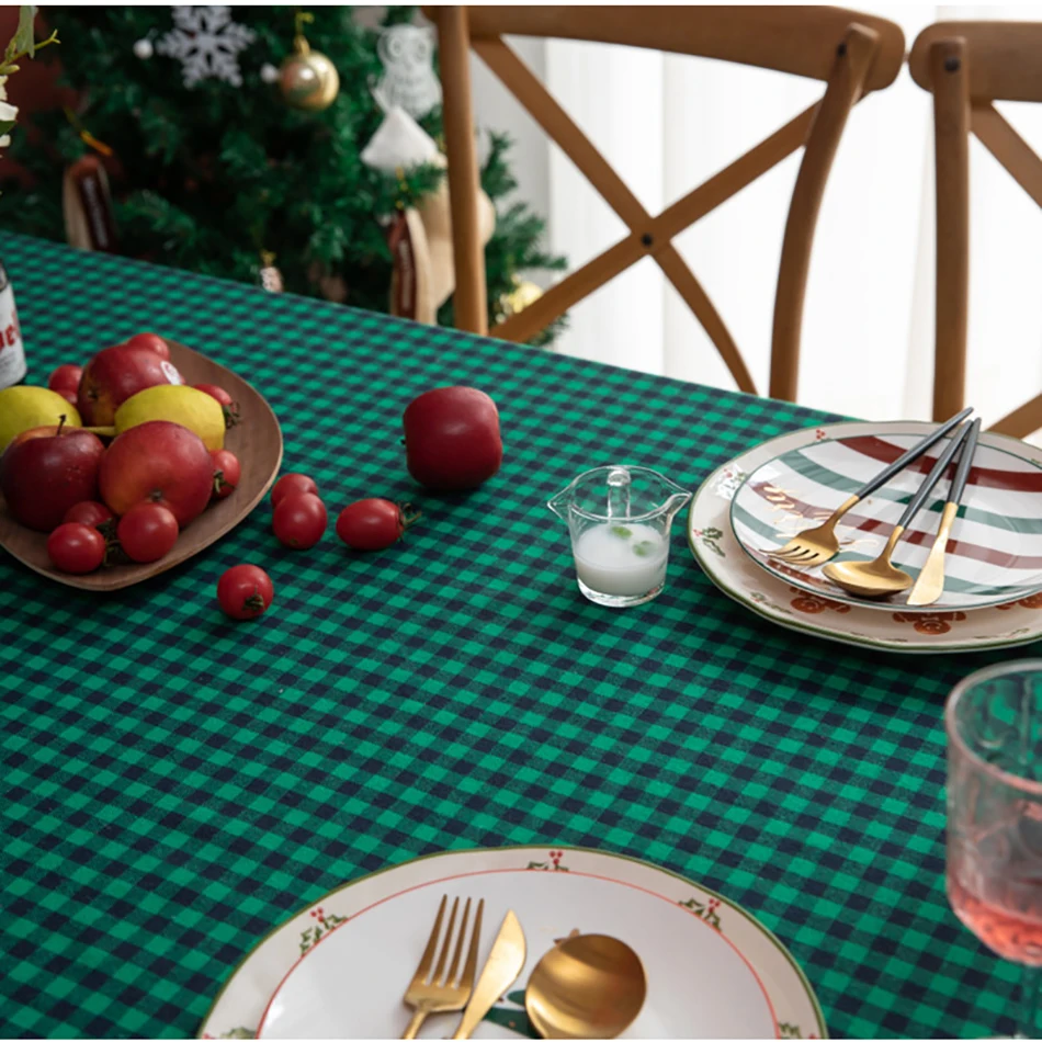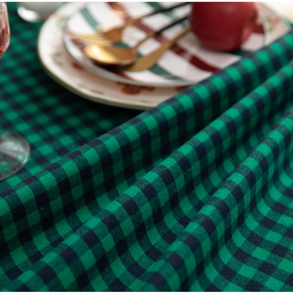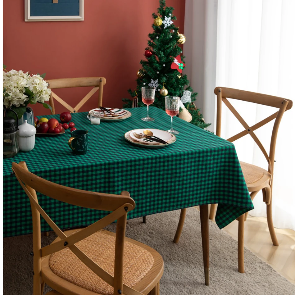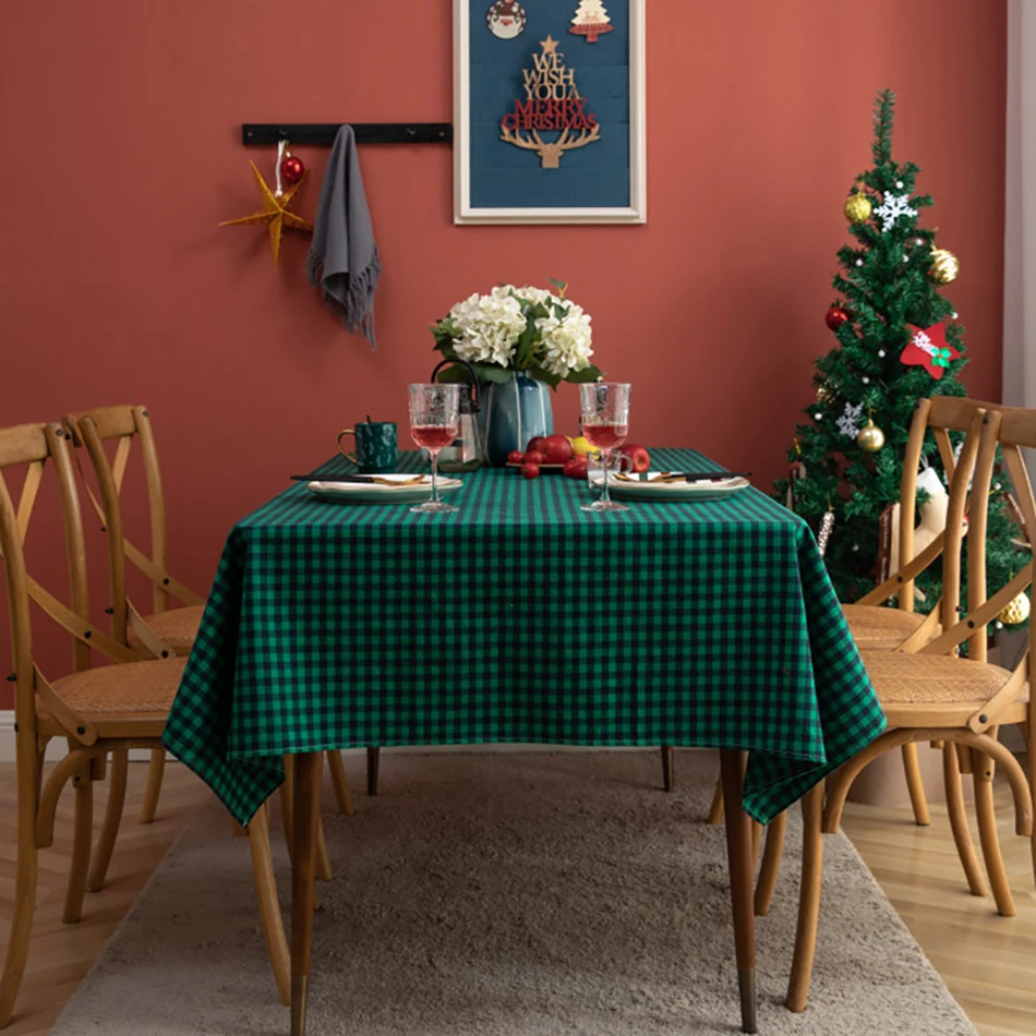 Рождественская скатерть в клетку из хлопка и льна, зеленая, черная, новогодняя, праздвечерние чная Декоративная скатерть для гостиной, столовый стол, домашний декор