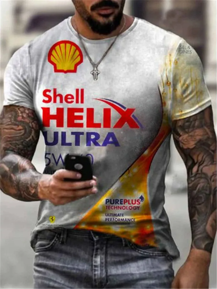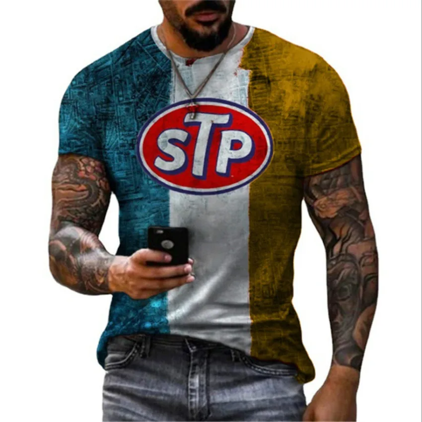 Мужская Летняя свободная футболка с круглым вырезом и короткими рук...