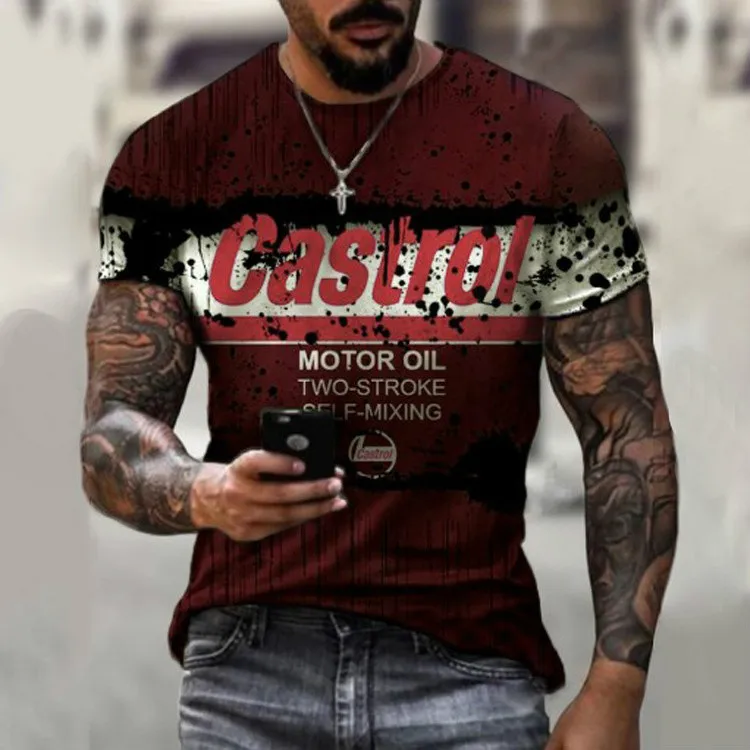 Мужская футболка с коротким рукавом, круглым вырезом и принтом