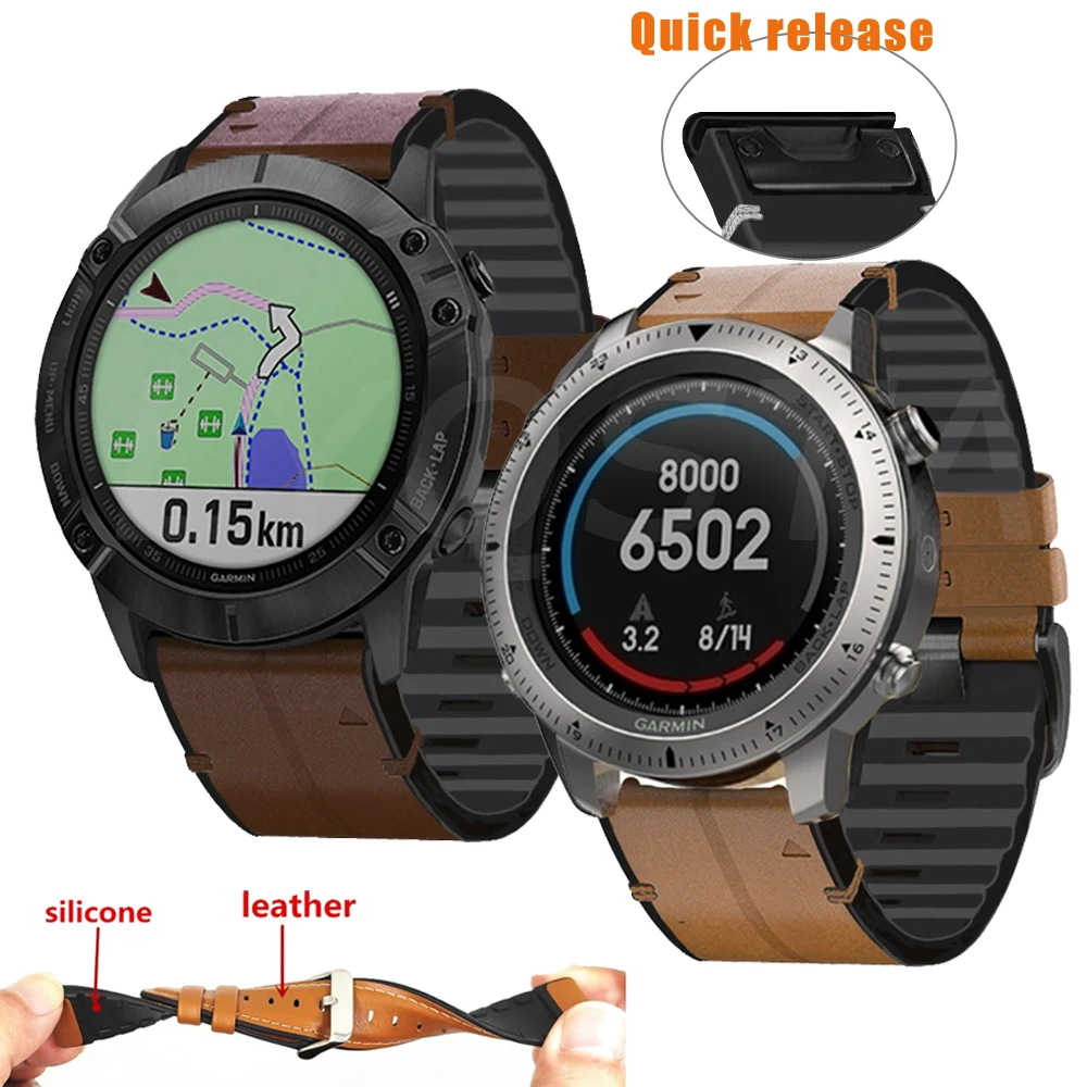 Ремешок для Garmin Fenix 6 6XPro 5 5X Plus 3HR 935 MK2 D2, быстросъемный браслет из силикагеля и кожи для наручных часов, 26 22 мм