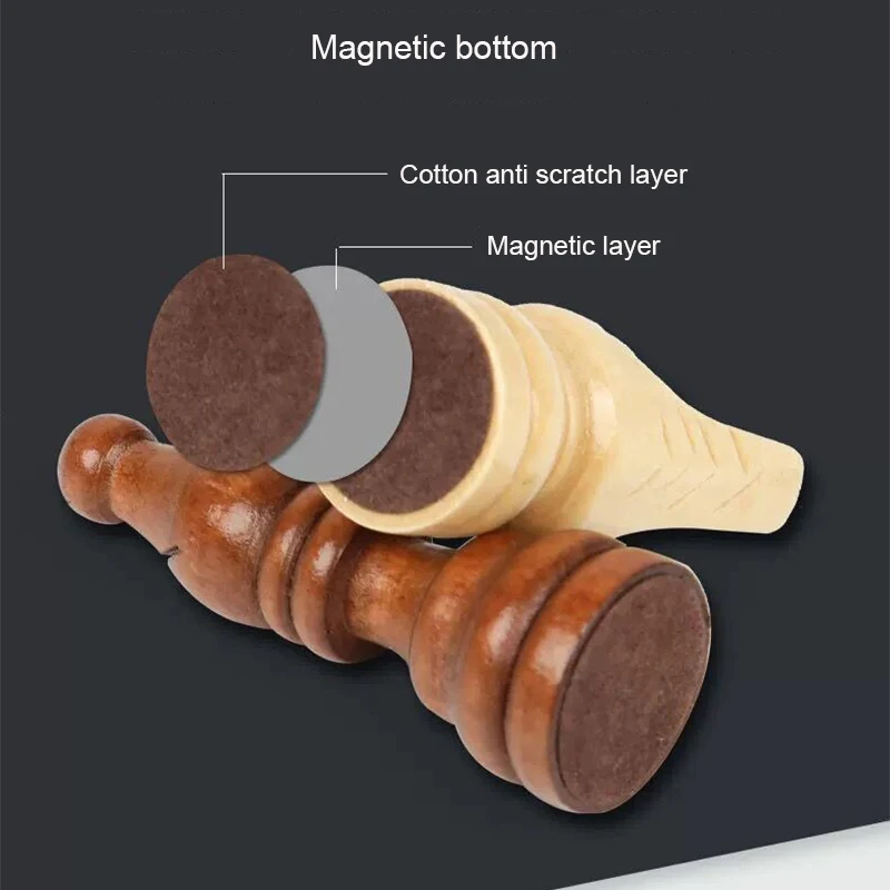 1. Твердая древесина как сырье шахматных частей, прозрачное зерно, долговечное.2. Краска для воды: с использованием краски для воды, яркий цвет, не ослепляющий.3. Магнитное дно: он может адсорбироваться на шахматной доске, поэтому его нелегко перемещать во время игры, даже встряхивание шахматной доски не приведет к тому, что части на шахматной доске будут смещаться или падать.