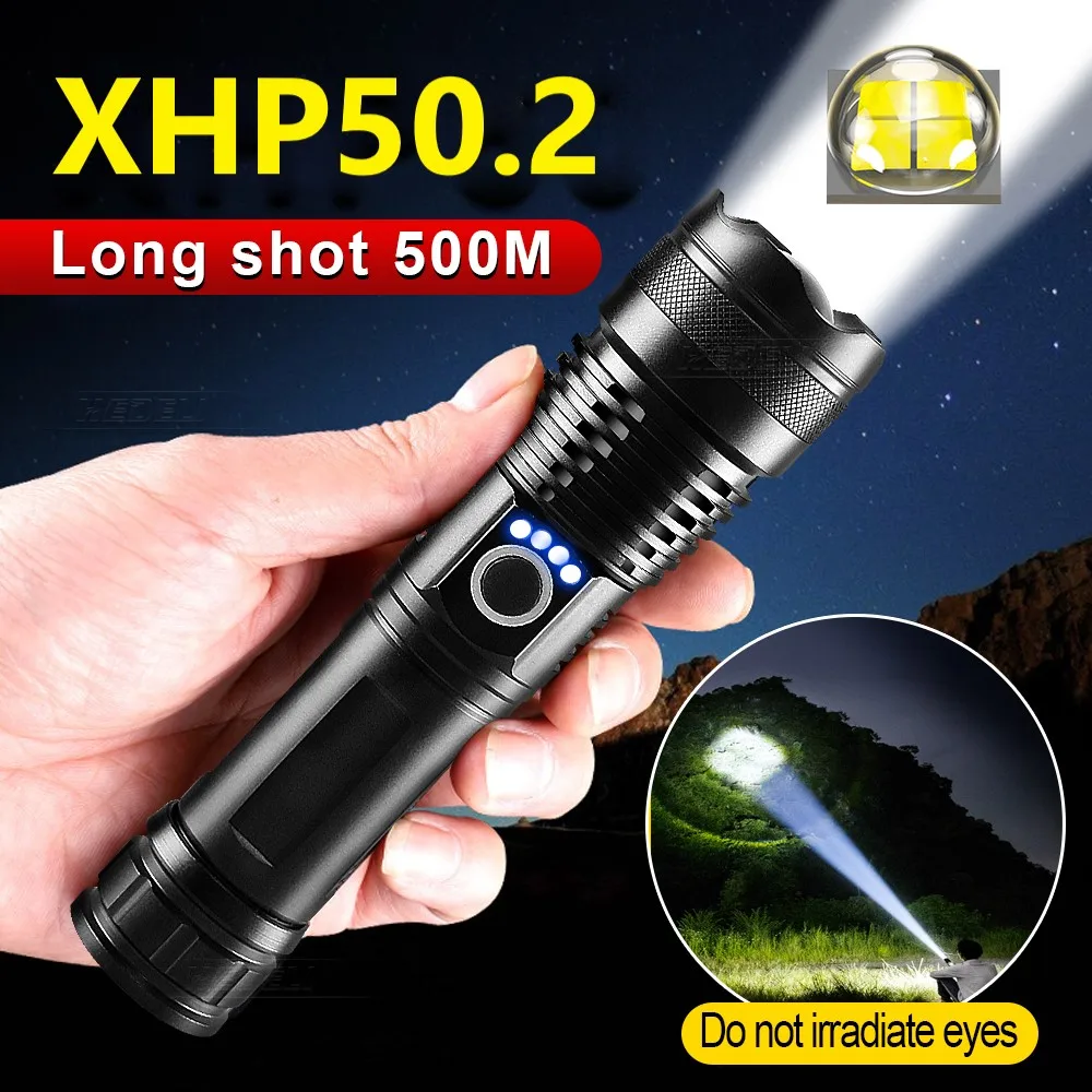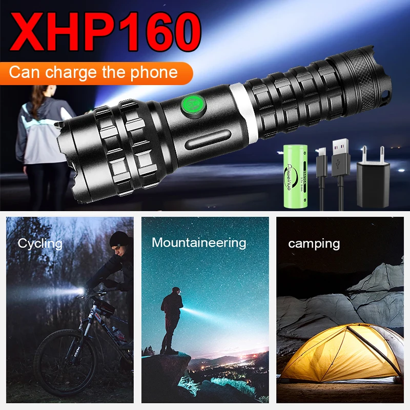 Новинка, мощный яркий фонарик XHP160, перезаряжаемый светодиодный фонарик высокой мощности лм, тактический фонарь s XHP90, фонарь для лагеря