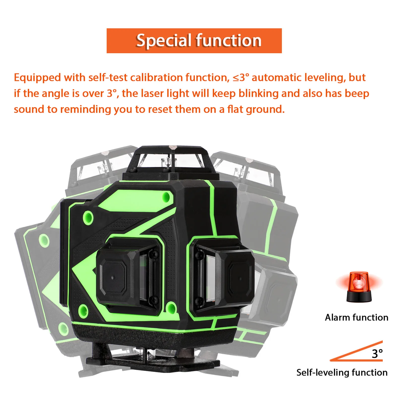 Профессиональный лазерный уровень 4D, 16 линий, горизонтальный и вертикальный крест на 360 градусов, супермощный самонивелирующийся лазерный уровень с зелеными линиями