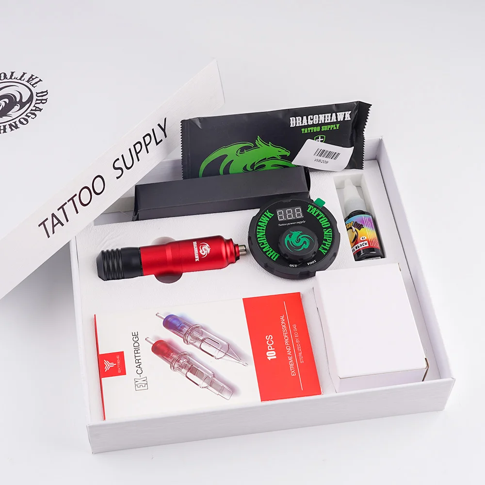 Набор для тату-машинки Dragonahawk, полное оборудование для татуировок, чернила для экстремальных картриджей, иглы с ЖК-дисплеем, мини-блок питания для татуировки