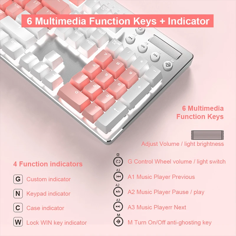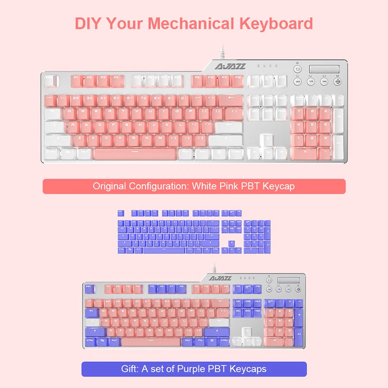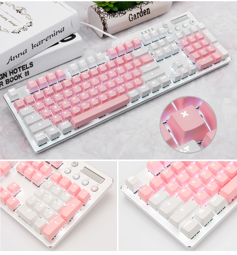 AK35I Pink White Keycap with White Lighting Keyboard Green Red Shaft Mechanical Gaming Keyboard for Gamer PC