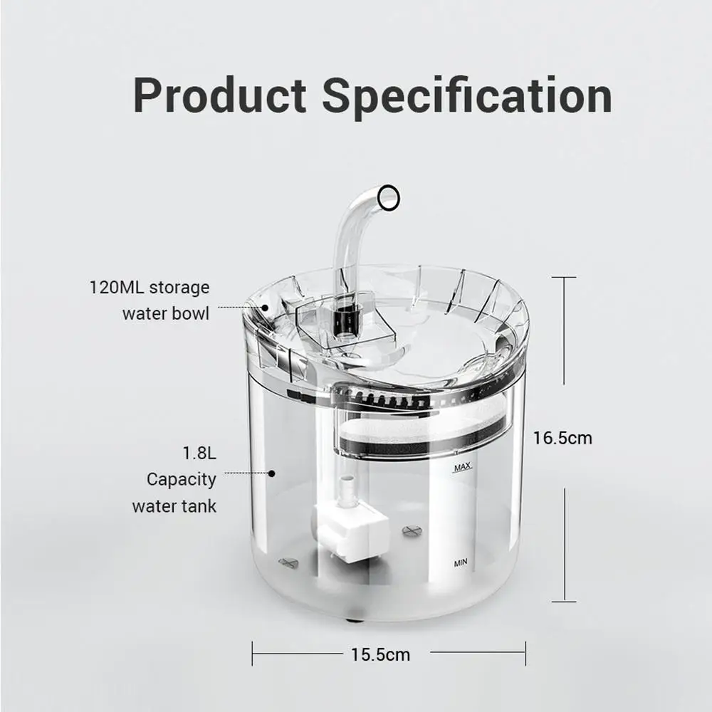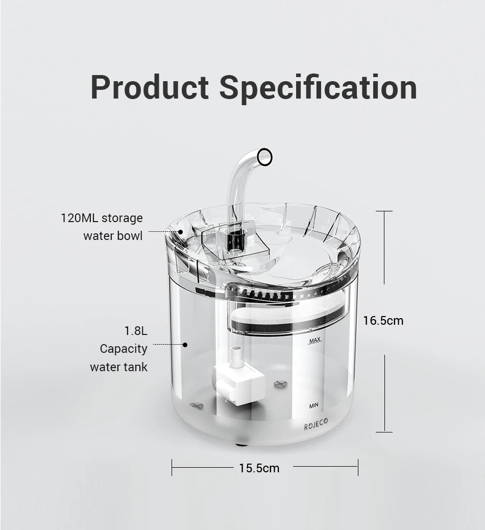 Емкость 2л Не нужно часто пополнять воду, и она может удовлетворить питьевые потребности кошек, собак, птиц и других домашних животных различных размеров. Не нужно беспокоиться о том, что ваши питомцы не получают достаточно свежего напитка, когда вы идете на работу.