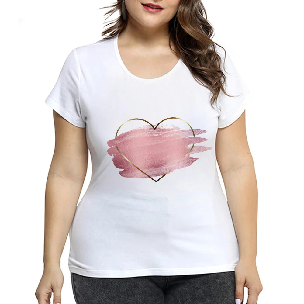 Женская футболка с коротким рукавом и принтом в виде сердца, размеры до 4XL