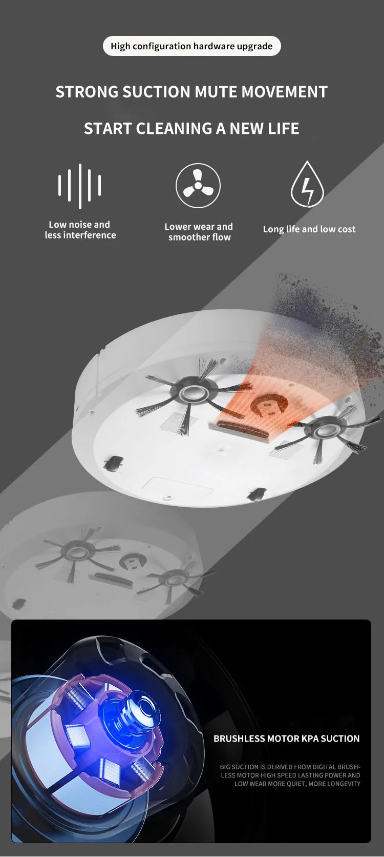 Сильное всасывание: сильное всасывание, может всасывать пыль, крошки хлеба и грязь. Подходит для пола из цельного дерева и ковра, автоматическая очистка одной кнопкой.