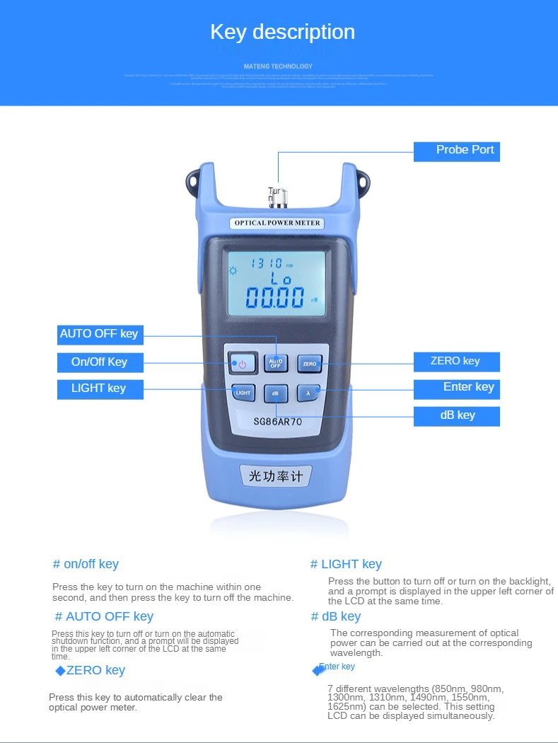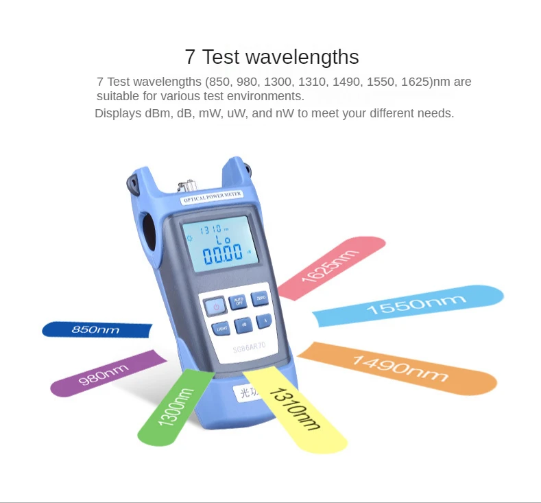 7 тестовая Длина волны (850, 980, 1300, 1310, 1490, 1550, 1625) нм применимо к различным тестовым средам.