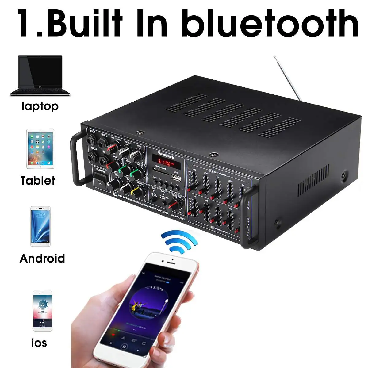 Усилитель мощности для домашнего кинотеатра, 2000 Вт, 220 В переменного тока, BlueTooth, стерео, поддержка FM, USB, SD, с дистанционным управлением