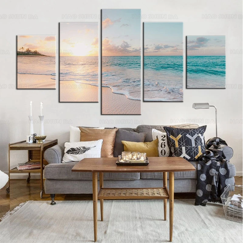 5 панелей холст стена искусство живописный вид моря на небе во время заката фотографии берега океана фотографии современный для гостиной