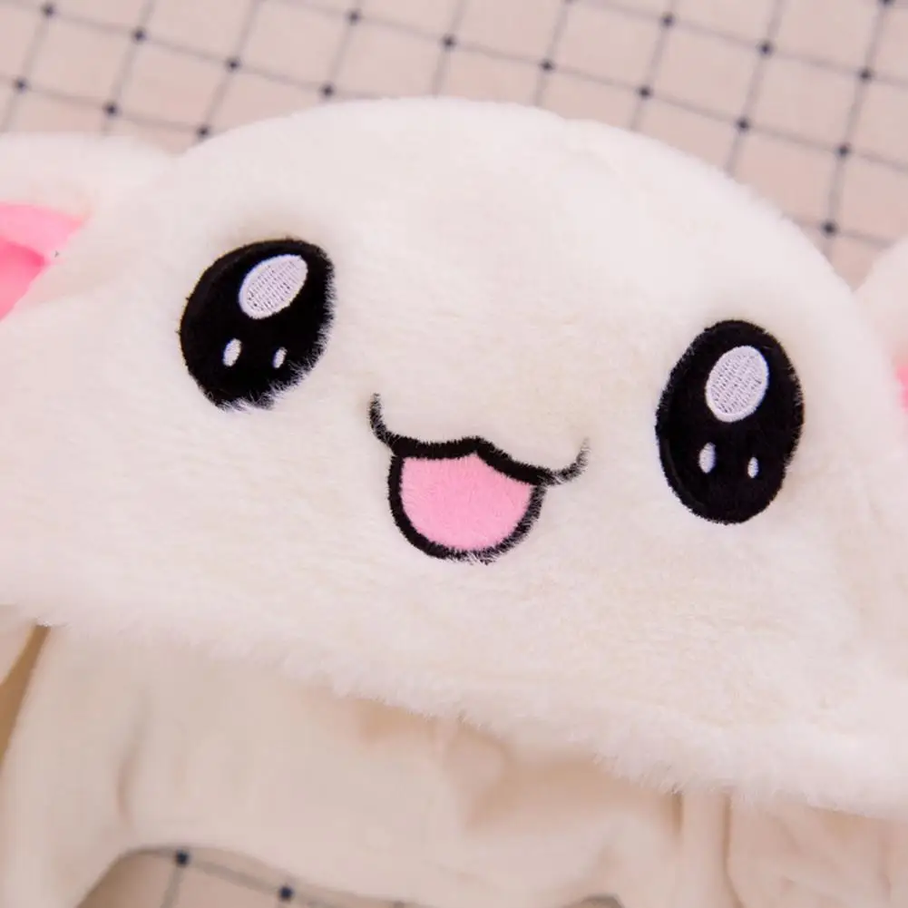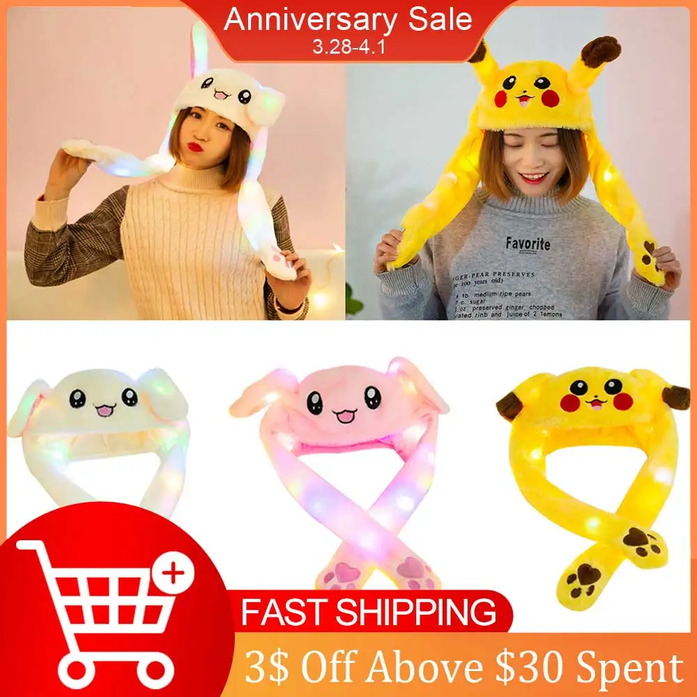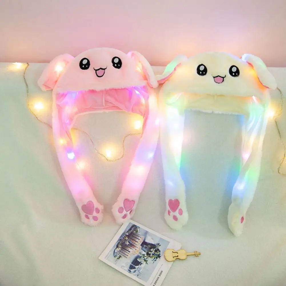 Милая светящаясясветильник ящаяся плюшевая шапка кролика, забавная игрушка для игры вверх и вниз, движущаяся подушка безопасности с ушками кролика, игрушка, шапка, подарки для девушек и детей