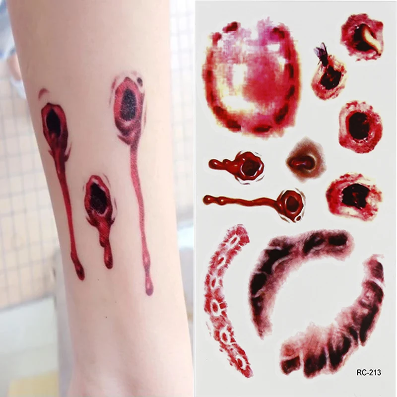 Новейшие временные ужасные шрамы с имитацией чешуи, кровавая татуировка, наклейка для макияжа, украшение на Хэллоуин, наклейка с травмой