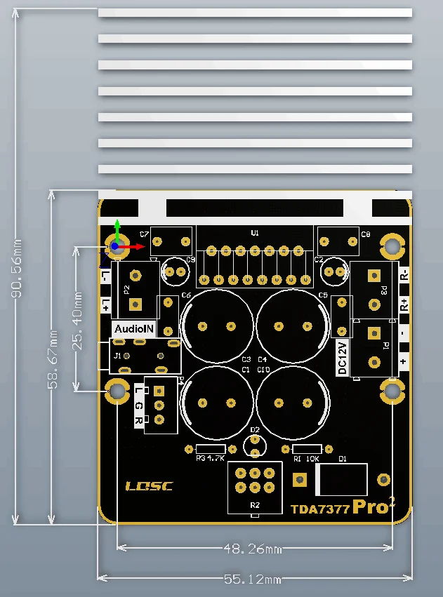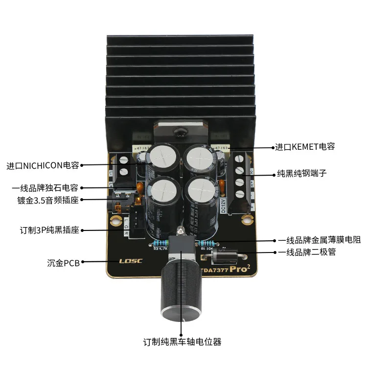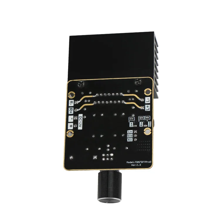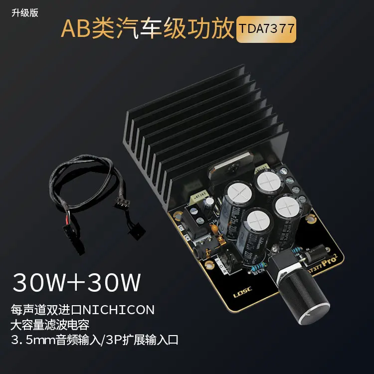 Автомобильный усилитель мощности класса AB 2*30 ВтОсобенности:Напряжение источника питания: рекомендуется DC9-18V, 12 ВВыходная мощность: можно подключить колонки 4-8 Ом, стерео до 2x35 Вт (18V4 Ом)Режим ввода: аудиовход 3,5 мм/входной порт расширения 3PЗащита: защита от обратного замыкания на входе питания, короткого замыкания, перегрузки по току, перегреваВес нетто продукта: 112 гРазмер:Размер печатной платы: 58,67*55,12 ммОткрытие ручки потенциометра: 7 ммОбщий (включая радиатор): (длина * ширина * высота) 90,56*55,12 мм * 26,65 ммТехнологические материалы: Высококачественная печатная плата с погружением чистого черного золота, импортные аудиоконденсаторы KEMET, двойные импортные фильтрующие конденсаторы большой емкости NICHICON на канал, конденсаторы отечественных монолитных фильтров первой линии и Металлические пленочные резисторы. Специальный заказ клеммы из чистой черной чистой меди, позолоченные клеммы аудиовхода, заказ клеммы 3P чисто черного цвета.Список доставки:1x плата усилителя мощности TDA73771x экранированный аудиовход 3P