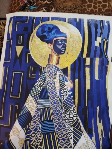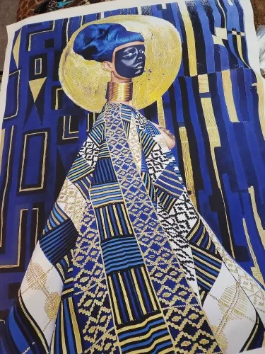 Плакат черная женщина с серебряной фольгой, холст, современные карт...