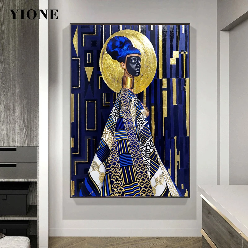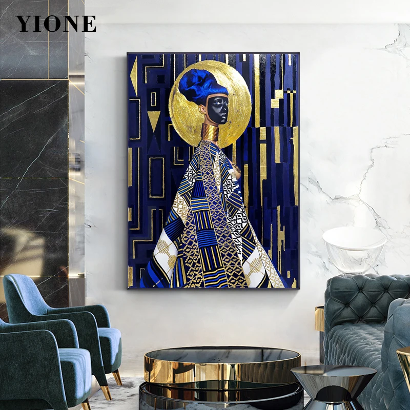 Черная маска блестящая золотая Синяя абстрактная африканская искусство Роскошная фигурка плакат печать Настенная картина для гостиной спальни