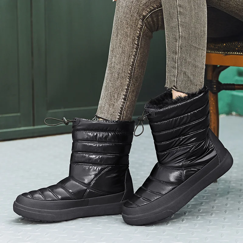 Новые женские ботинки, простые однотонные зимние ботинки, повседневные ботинки с рукавом, толстые Нескользящие теплые зимние женские ботинки из хлопка, женские ботинки