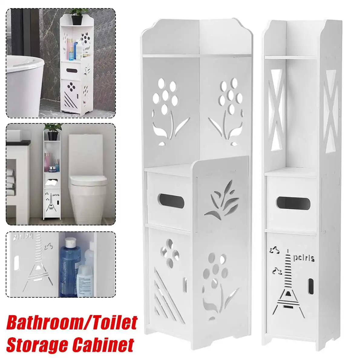 Особенности:-Легко собирается.-Влагостойкий, прочный.-Шкаф для хранения, сохраняет его аккуратным.-Можно разместить лекарственные средства, туалетные принадлежности, косметику и т. Д.-Подходит для ванной комнаты и прачечной.-Угловой шкаф можно разместить в углу.-Верхний край гладкий и круглый, чтобы избежать ненужных травм в результате аварии.-Выдвижной главный ящик предлагает секцию, которая достаточно велика для ваших туалетных рулонов и сохраняет их сухими.