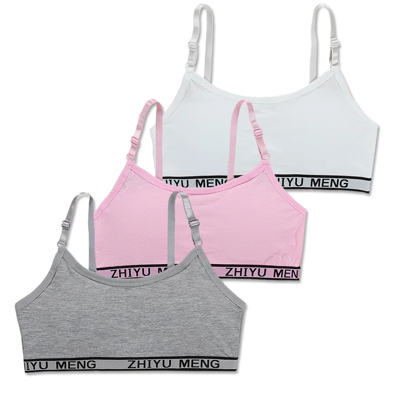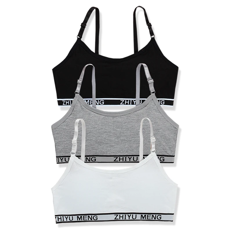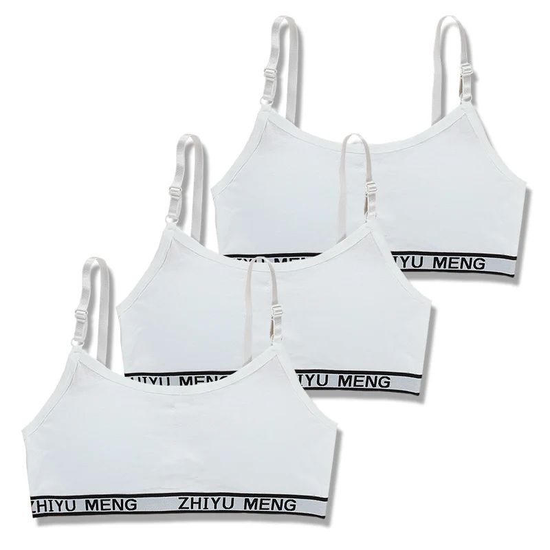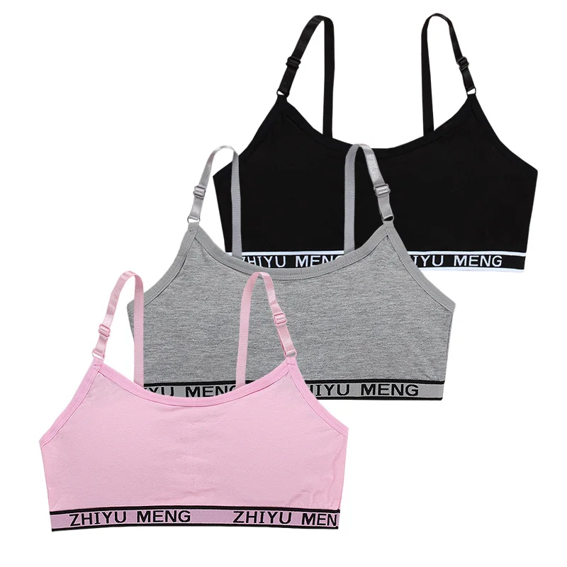 3 шт.лот, хлопковое тренировочное нижнее белье для подростков, спортивный бюстгальтер для девочек, топ, бюстгальтер для школьников, для детей От 8 до 18 лет