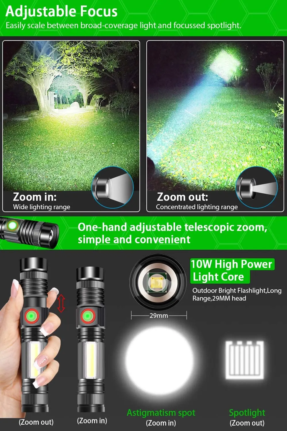 Самый яркий светодиодный фонарик, водонепроницаемый магнитный фонарь онарик с Cob подсветкой, карманный зажим, масштабируемый для кемпинга, походов