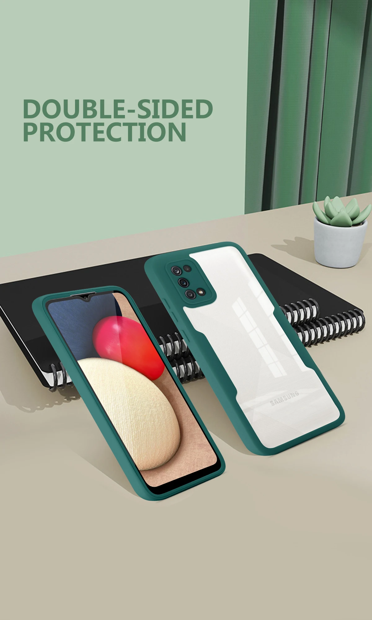 Двойная защитная пленка HD чехол для Samsung Galaxy A12 A22 A32 A52 A72 5G M12 A02 A21S A02S M32 A03S S21 M22 360 Полный Чехол