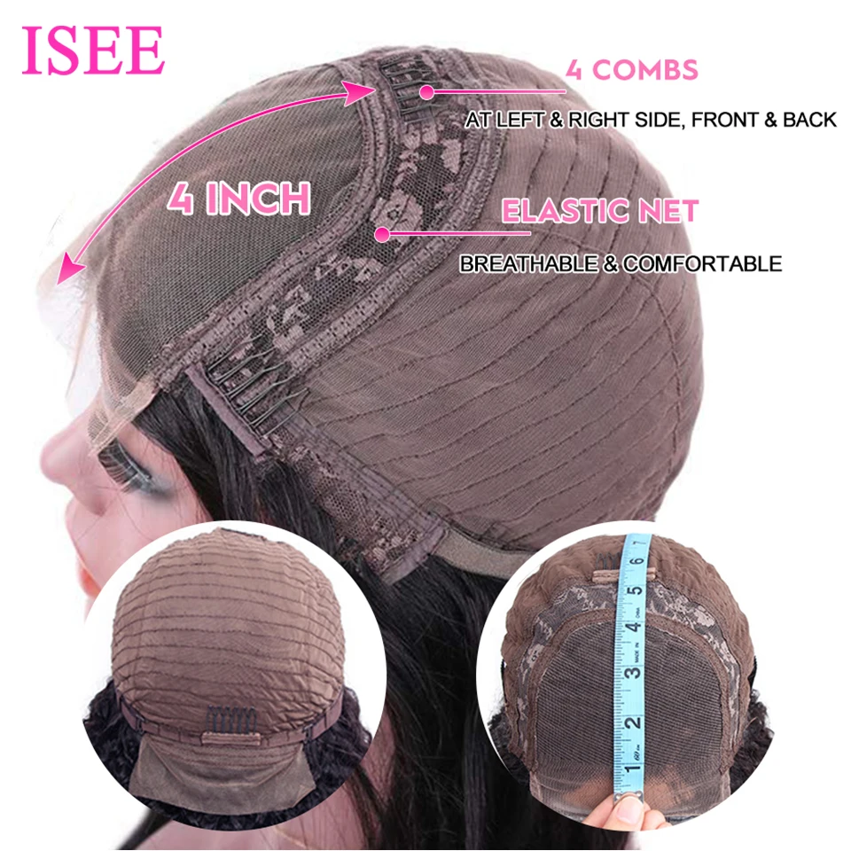 Парик с глубокой волной 4X4 на сетке, парик Боб для женщин, парики из человеческих волос, монгольские глубокие вьющиеся передние парики на сетке, ISEE Hair