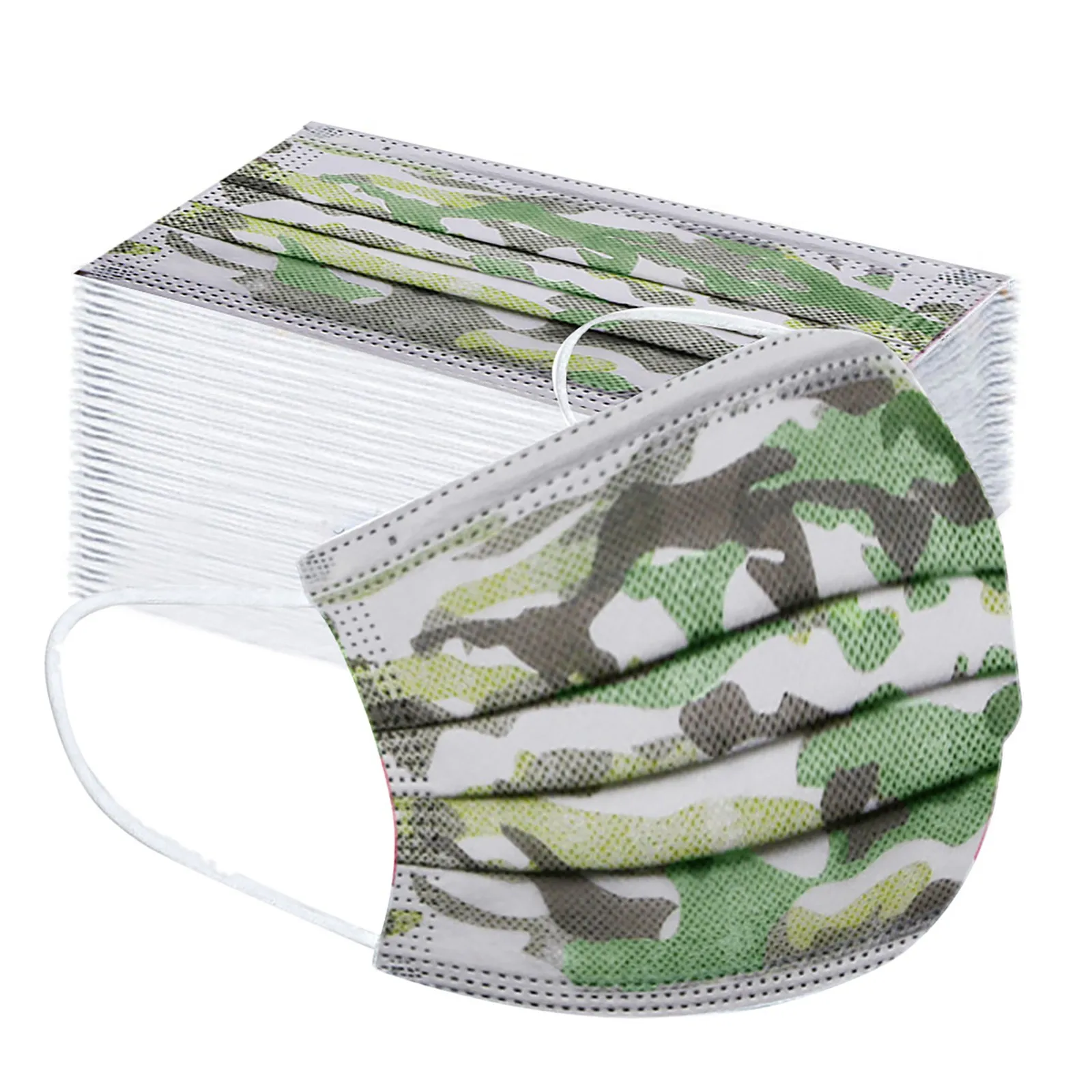 50 шт., одноразовые маски для лица с камуфляжным принтом