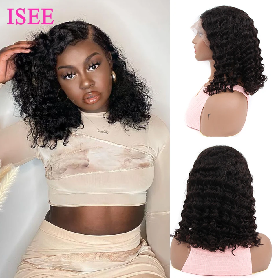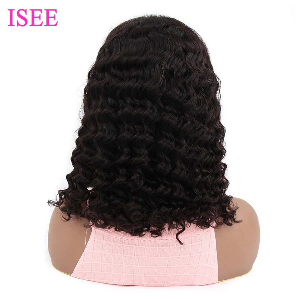 Парик ISEEHAIR бразильский с глубокой волной на сетке, парик Боб 4x4, парик на сетке для женщин, парики из человеческих волос, парики с глубокой кудрявой сеткой спереди