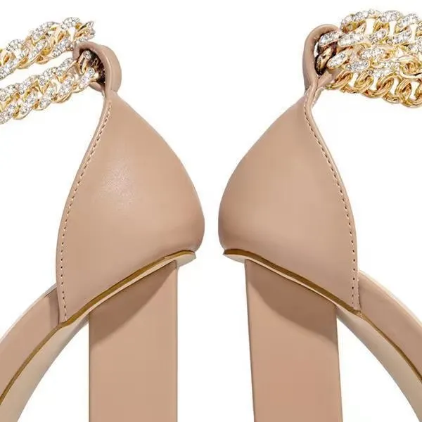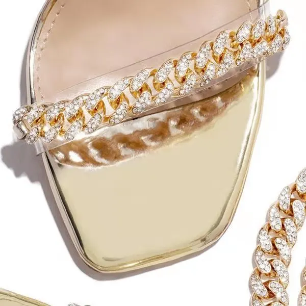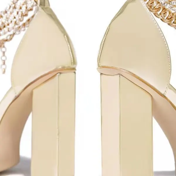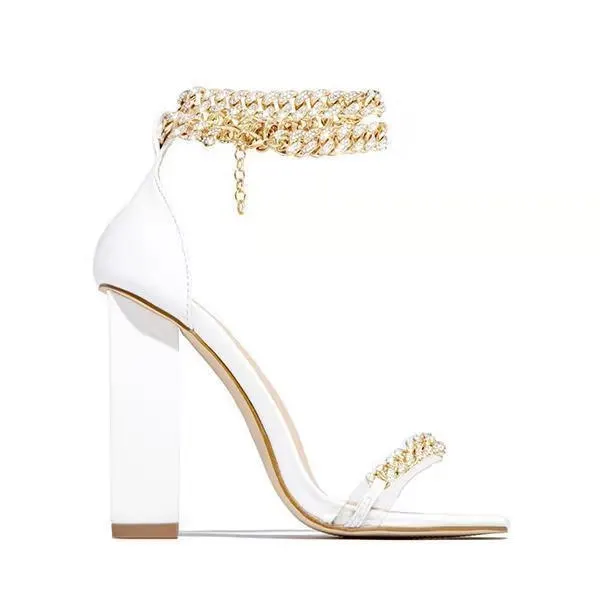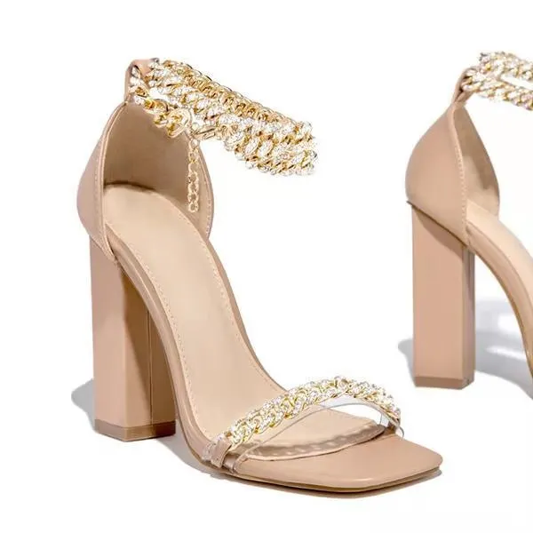 Женские босоножки 2021, летние модные пикантные однотонные Повседневные Удобные туфли на высоком квадратном каблуке с металлической цепочкой, женские туфли-лодочки на толстом каблуке
