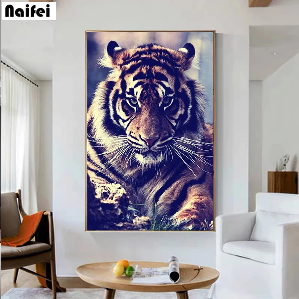 5D DIY Full Square Round Diamond Painting Tiger Diamond Embroidery Animal Cross Stitch Kits Rhinestones Mosaic Wall Art Decor