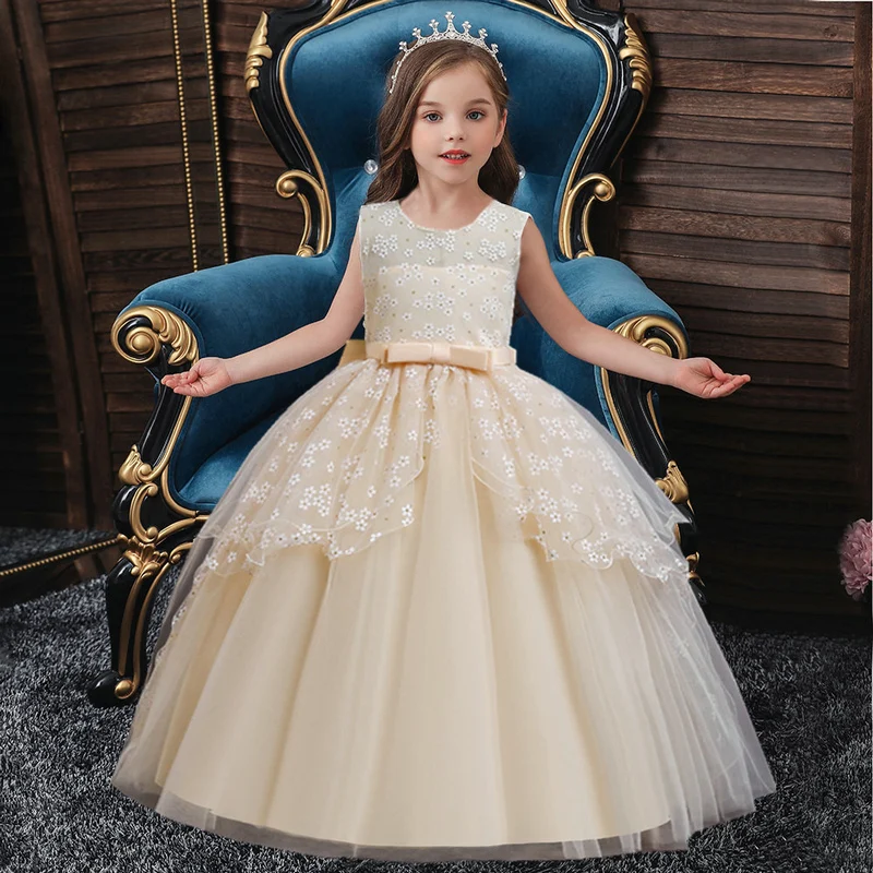 Детское кружевное бальное платье, бальное платье с цветочным рисунком для девочек 6, 8, 10, 12, 14 лет