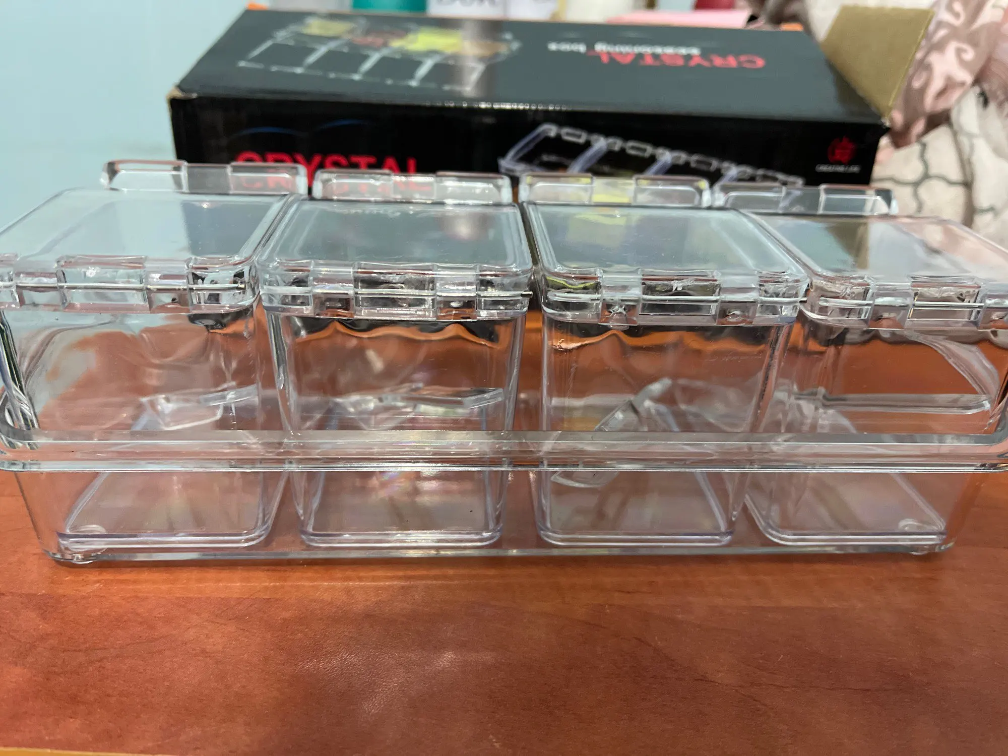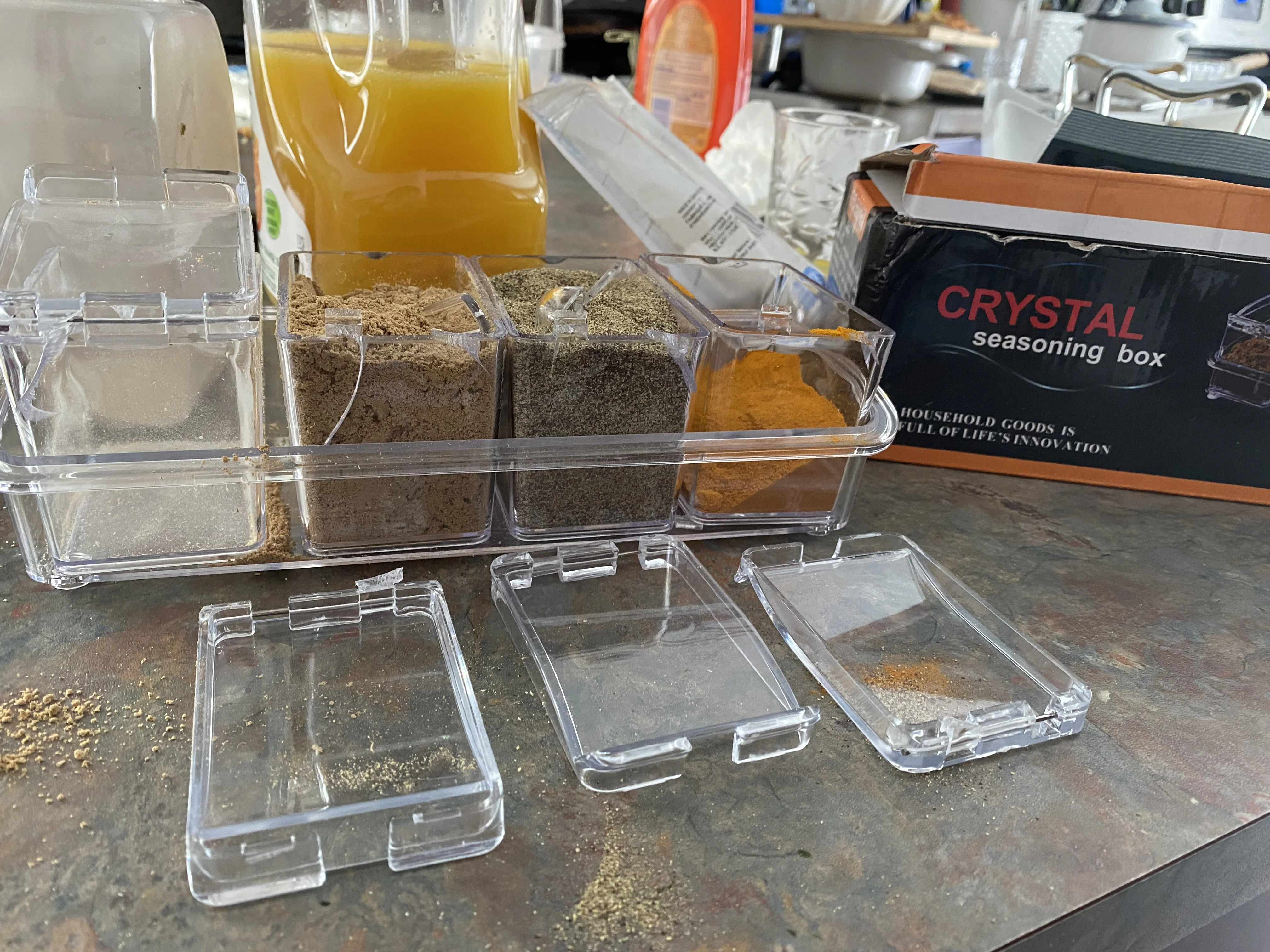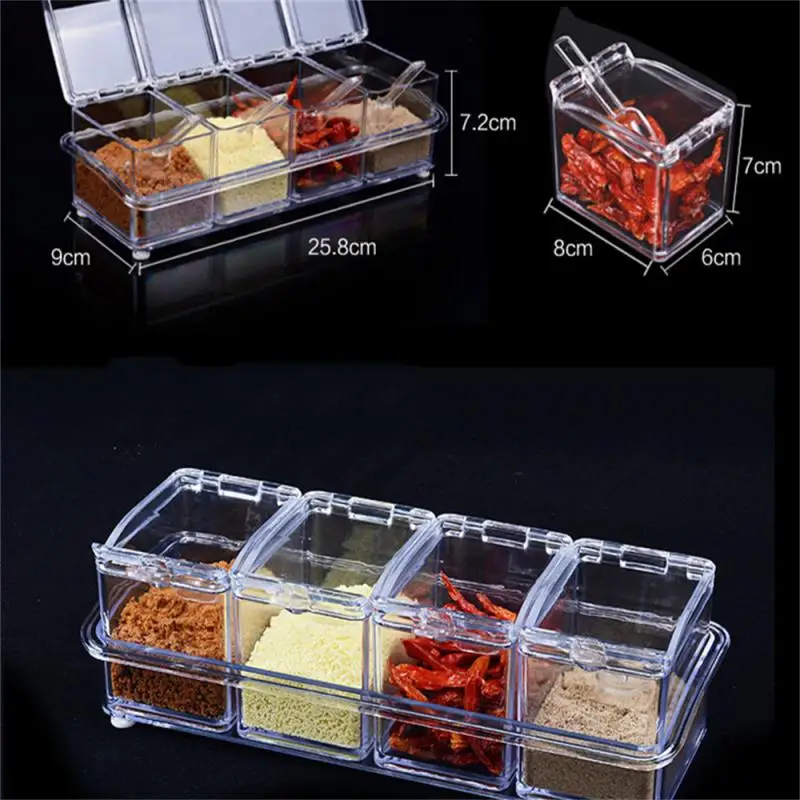 Кухонные принадлежности, прозрачная коробка для приправ, 4 ячейки, 4 в 1, с ложкой, приправа банка шт. в комплекте, Полка для специй, Органайзер
