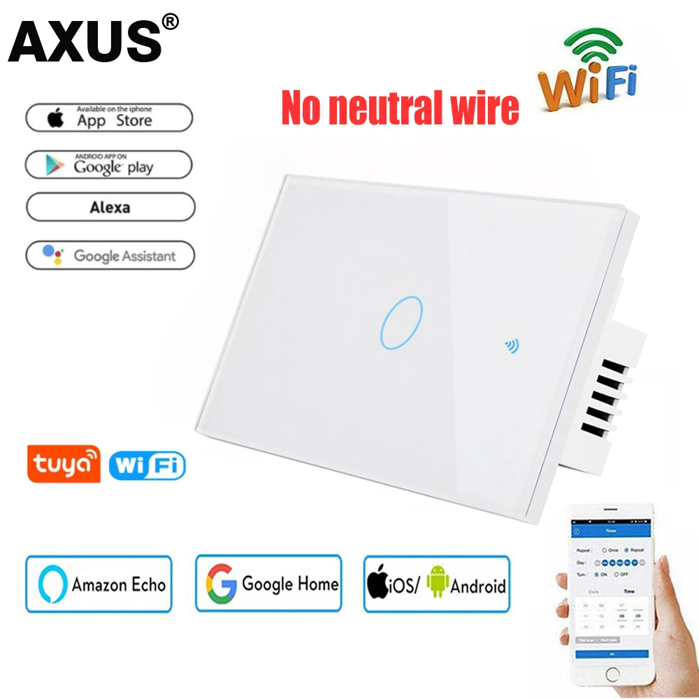 Умный выключатель AXUS Tuya, настенный сенсорный выключатель с Wi-Fi, без нейтрального провода, 123 клавиши, для Alexa Google home, Голосовое управление