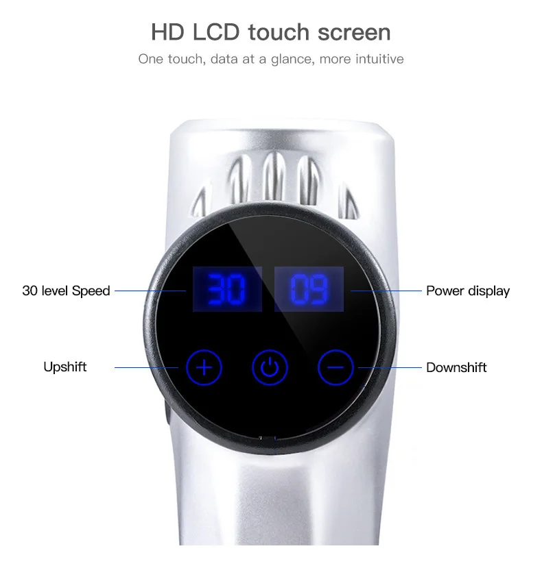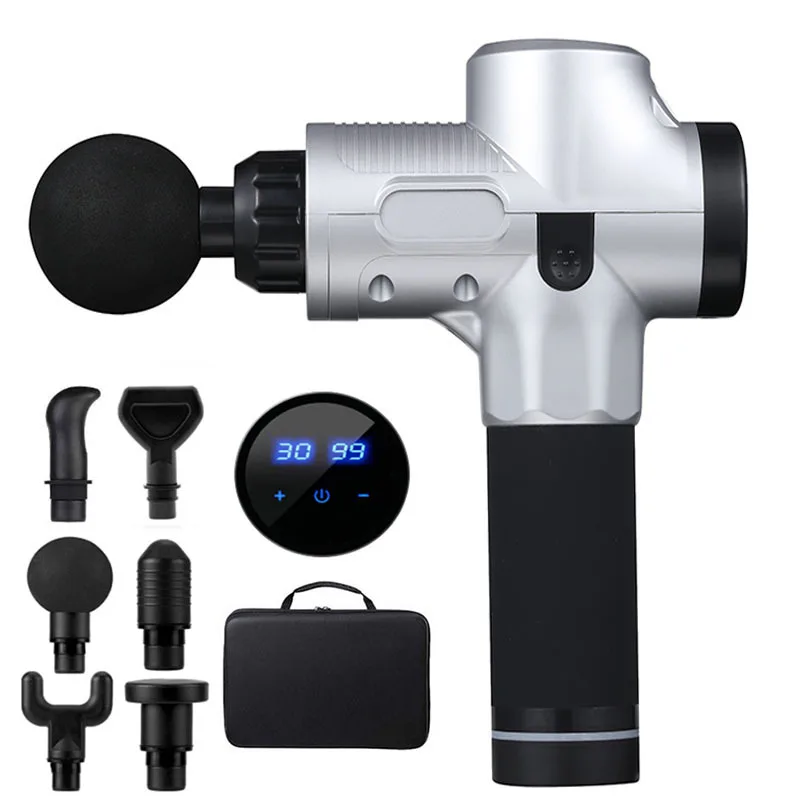 Массажный пистолет с 6 головками, модный пистолет, Спортивная терапия, 30 скоростей, массажер для мышц, расслабление тела, облегчение боли, массажер с ЖК-дисплеем