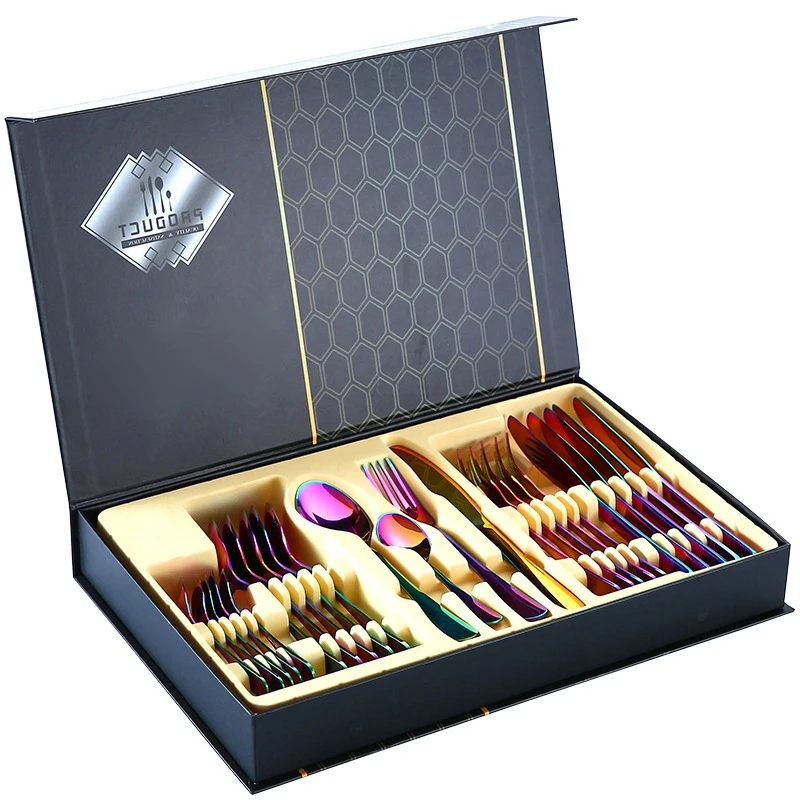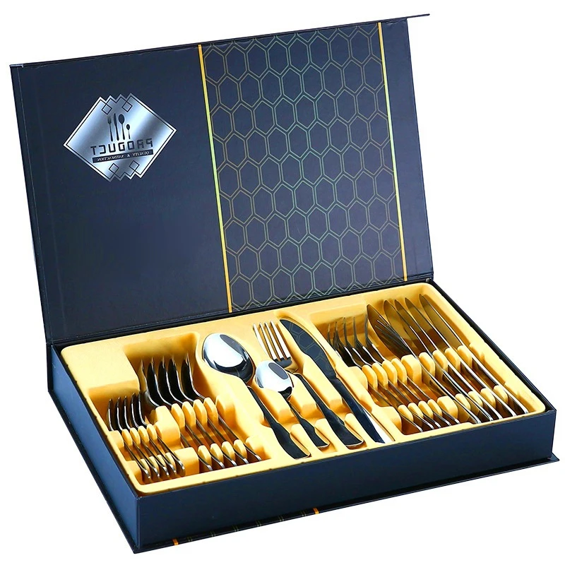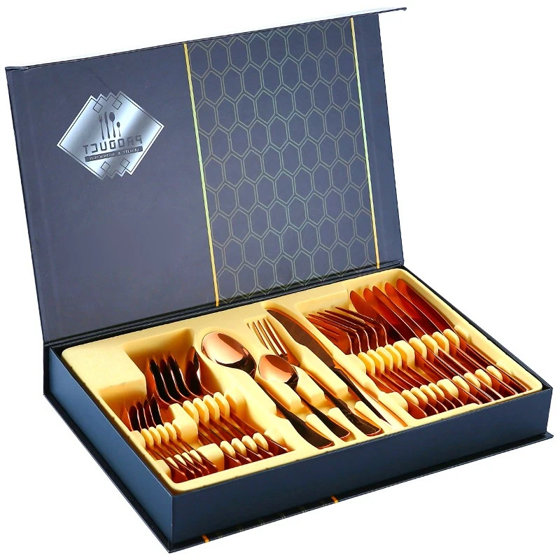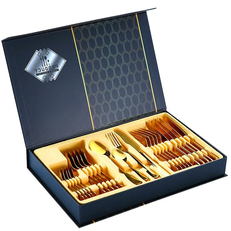 Набор столовых приборов из 24 предметов, покрытый золотом, нержавеющая сталь