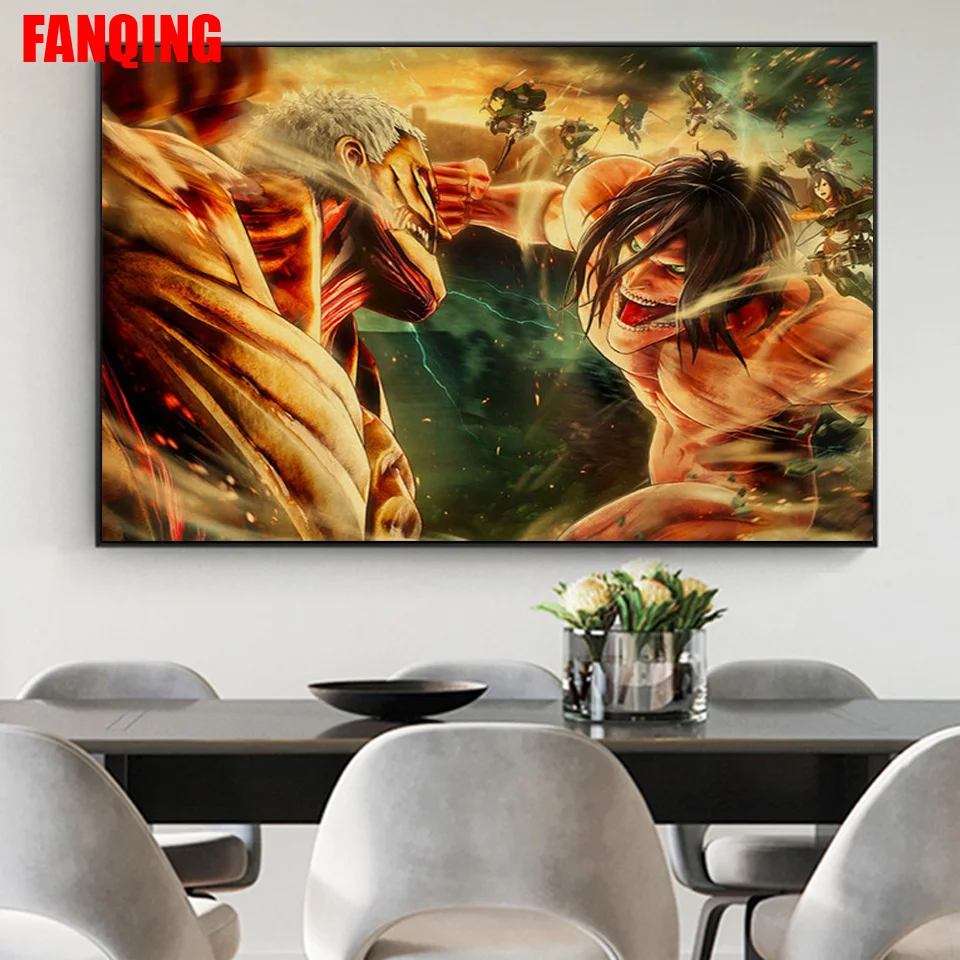 Алмазная картина сделай сам атака на Титанов, полностью круглая картина 5D, вышивка крестиком, украшение для дома, настенное искусство, вышивка, аниме картины