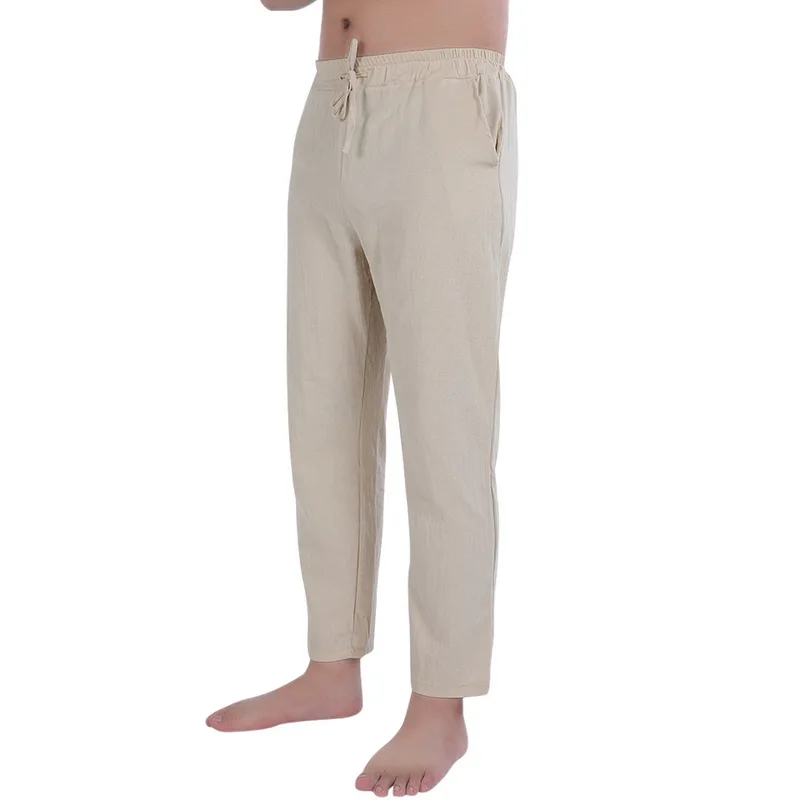 2021 Новые повседневные мужские хлопковые льняные брюки мужские лет...