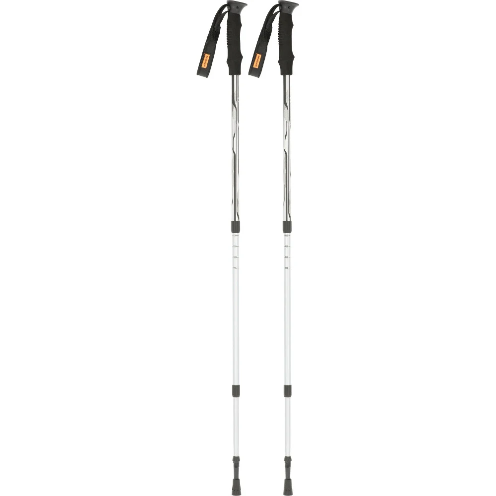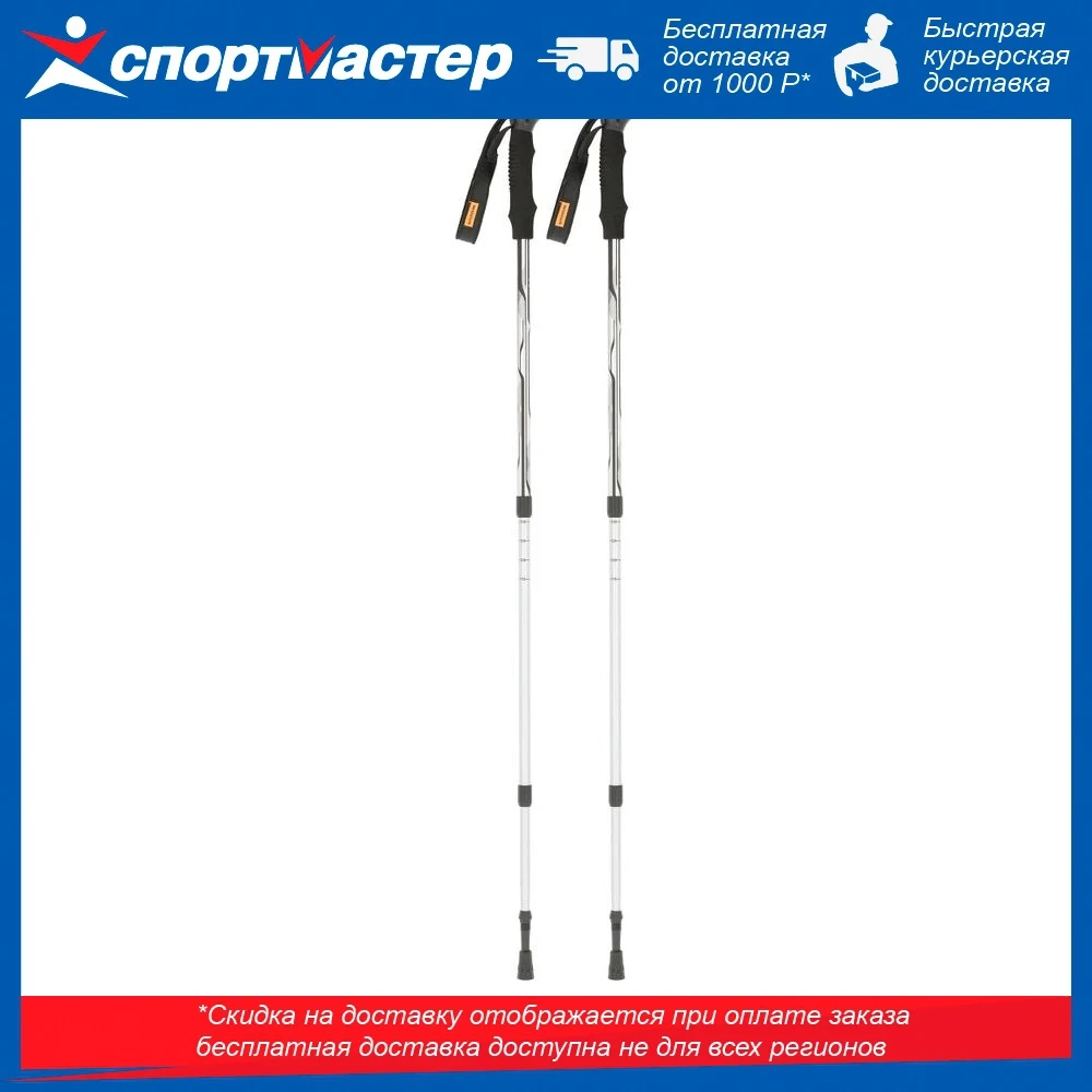 Трехсекционные телескопические треккинговые палки, изготовленные из алюминиевого сплава. Детали: регулировка по длине от 65 до 135 см, вес пары 500 г, победитовый наконечник, рукоятки из ЭВА и пластика.