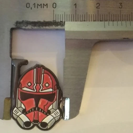 В оригинале данный клон должен быть оранжевый (332-я рота, 501 легион, раскраска в стиле Асоки), но он ярко-красный (на фото цвет в разы ярче, чем в жизни). Я этому рад, выглядит он, как представитель корусантской гвардии. Рамка, глаза и ПНВ серебристые, и отполированные. На первом фото не царапины, это отпечатки)