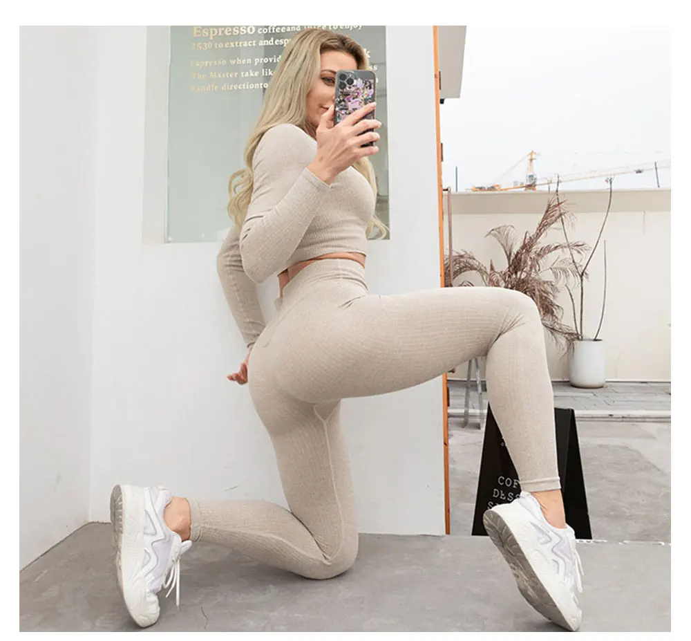 Набор для йоги ребристый женский костюм для фитнеса для тренировки ...