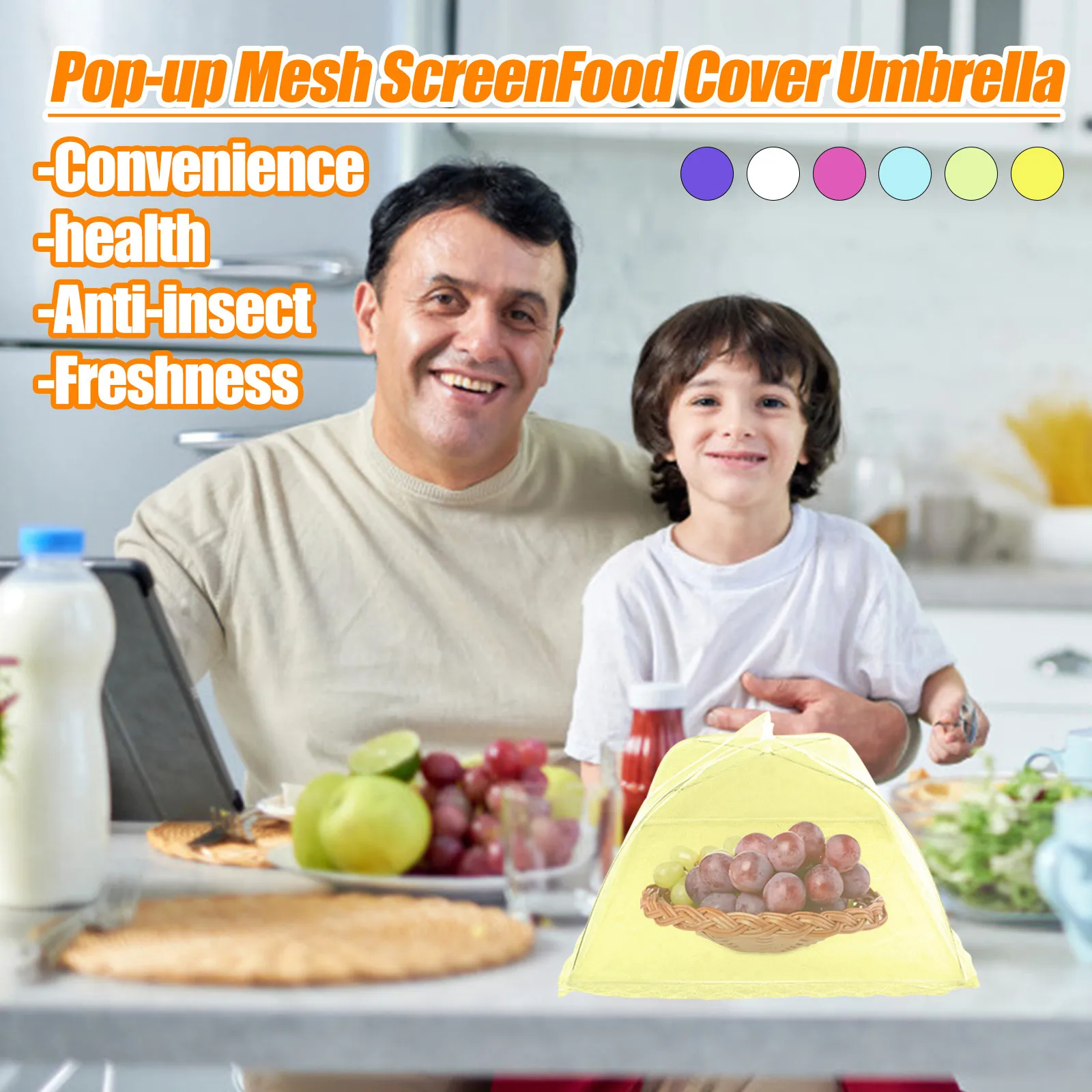Складная всплывающая сетчатая Крышка для еды, открытый зонтик для пищевых продуктов, крышка для пикника, барбекю, праздничная москитная сетка против Нахлыста, чехол для еды
