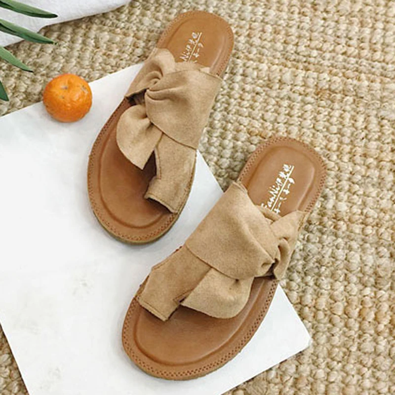 2020 обувь женские сандалии для женщин пляжная обувь с бантом сандалии-гладиаторы без застежки Женская летняя обувь плоские сандалии женские размера плюс