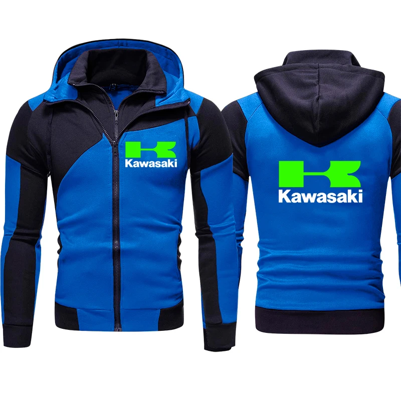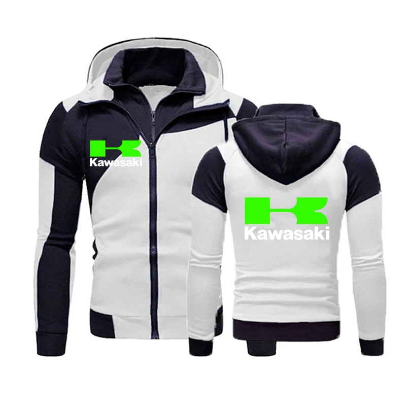 Новинка Осень-зима 2021, Мужская и Женская толстовка с капюшоном Kawasaki, мотоциклетная толстовка на молнии с принтом логотипа, Флисовая теплая Мужская толстовка, куртки
