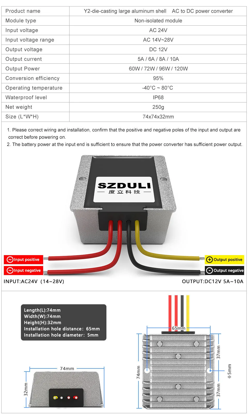 SZDULI 12 В24 В переменного тока в 12 В постоянного тока 1A 3A 5A 8A 10A понижающий преобразователь стандарта to 12 В постоянного тока для оборудования мониторинга
