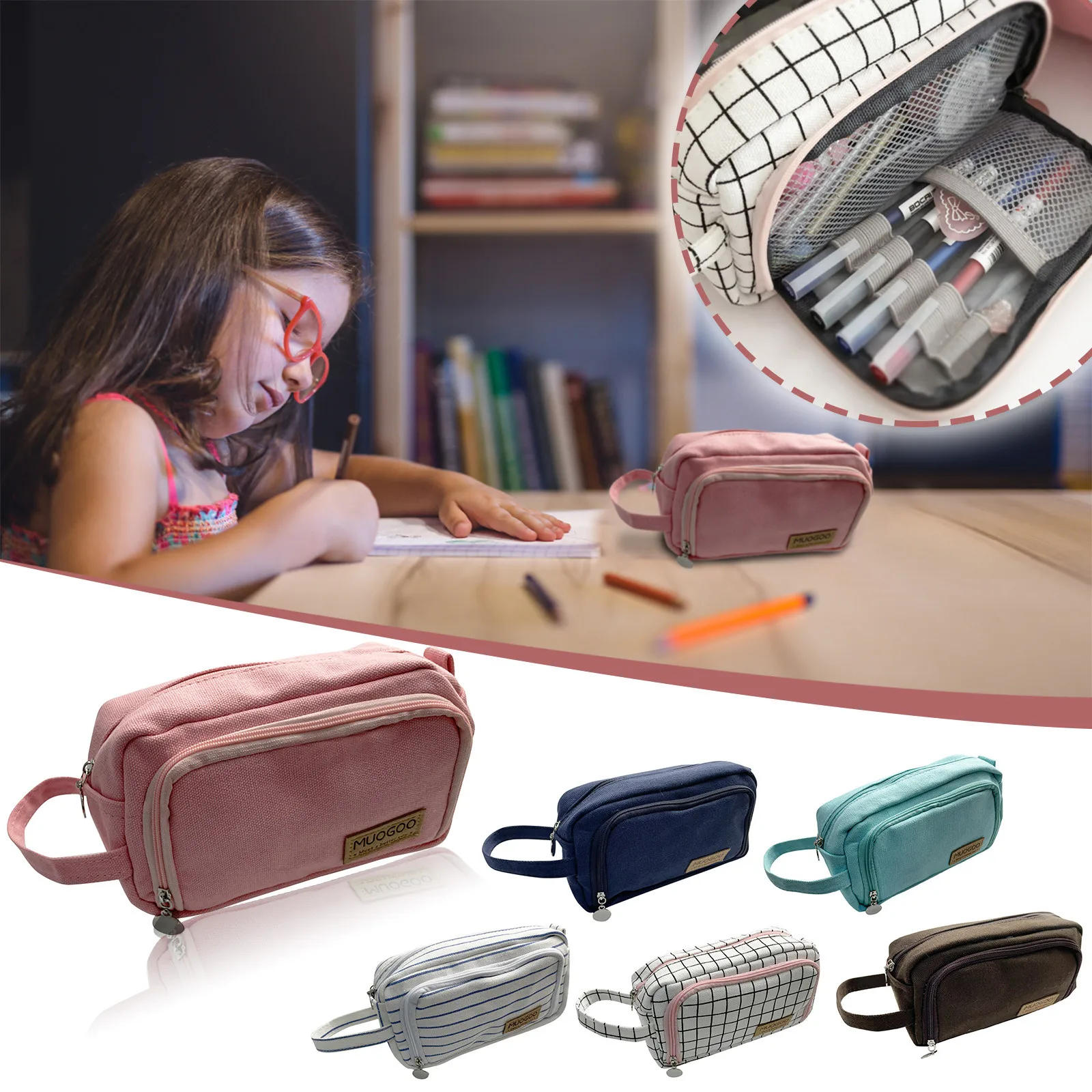 Студенческая однотонная коробка для канцелярских принадлежностей, Большая вместительная сумка для карандашей