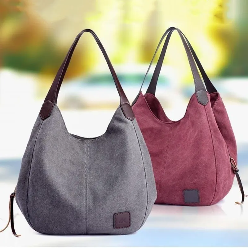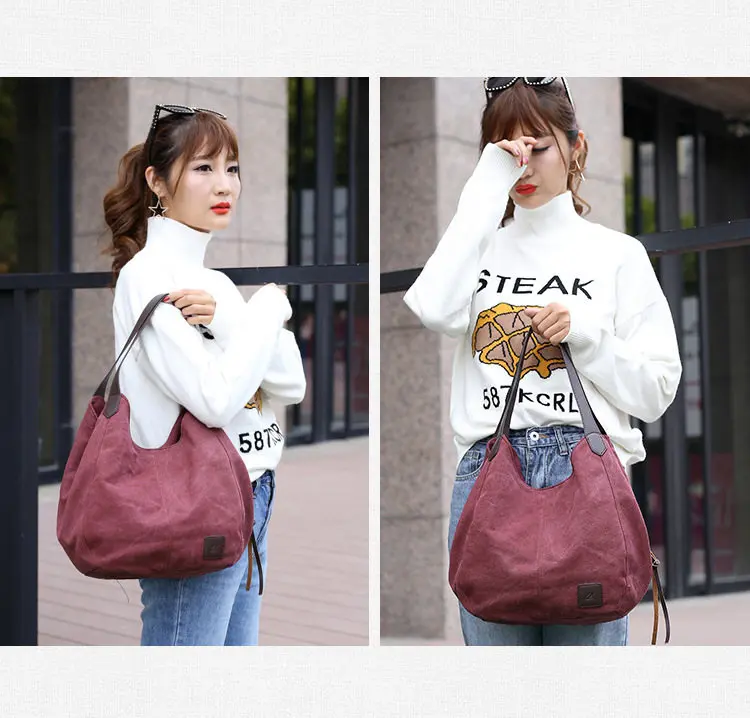 Сумка-шоппер женская с несколькими карманами, Модный дизайнерский саквояж на плечо, Повседневная хлопковая холщовая сумочка-тоут, клатч