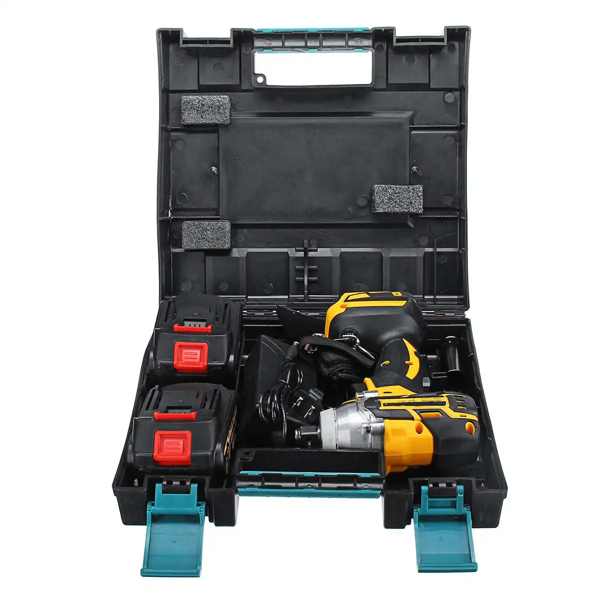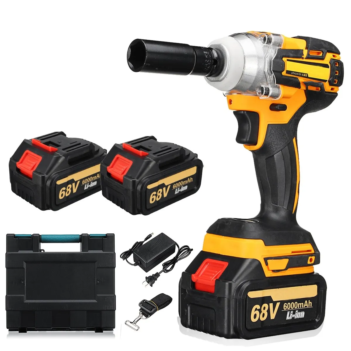 Безщеточный электрический ударный гайковерт 68 в 380 нм, ручная дрель, 12 дюйма, электроинструменты с 2 литий-ионными аккумуляторами 6000 мАч + ящик для инструментов