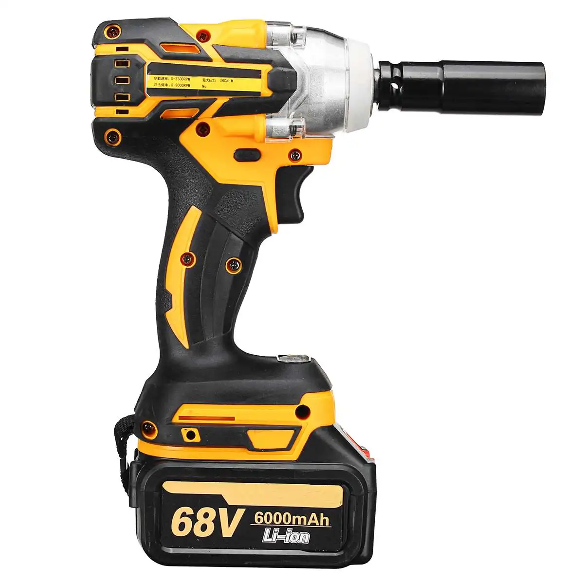 Название: Электрический ударный ключМодель: A47385Технические характеристикиЦвет: желтыйЗарядное устройство: AC100-240VЕмкость аккумулятора: 6000 мАчМакс. Крутящий момент: 380N.mБез скорости нагрузки: 0-3300 об/минЧастота удара: 3000IPM